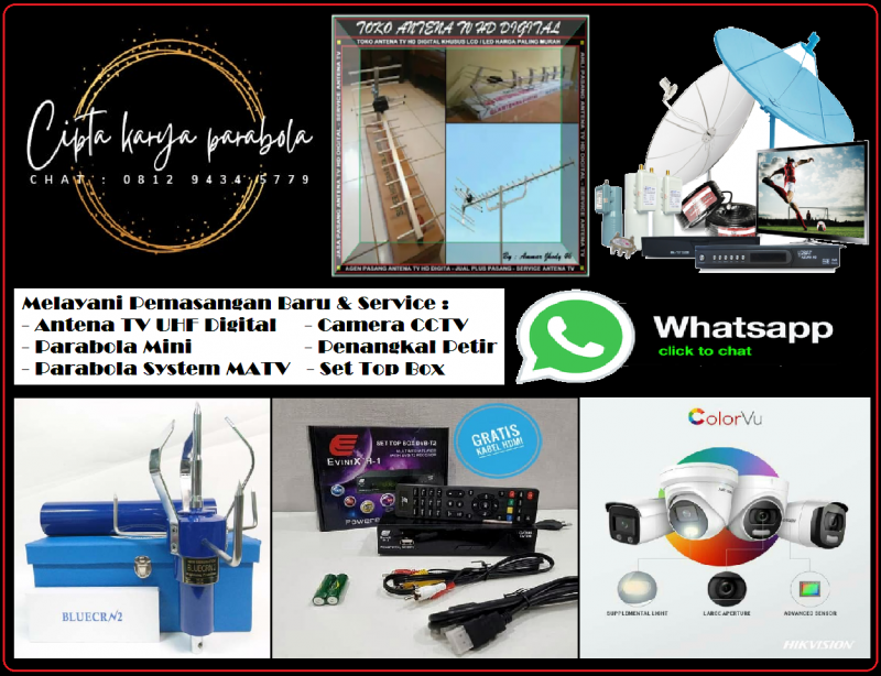 Selamat Datang Di Website Kami CIPTA KARYA PARABOLA  Toko Pemasangan Antena TV HDU Digital - Parabola Free Iuran - Camera CCTV - Penangkal Petir Terlengkap, Harga Terjangkau Se Jabodetabek.